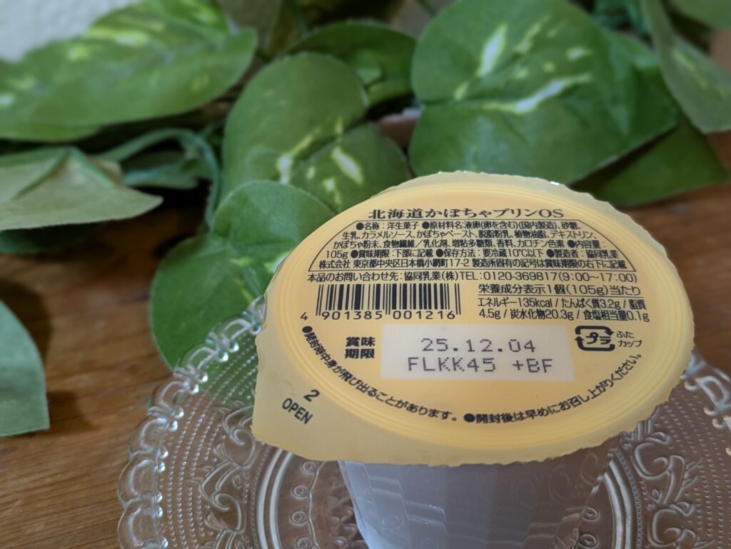 届いて早速原材料を見ると、カラメルソースよりかぼペーストが少なく、あまりかぼ度は高くなさそうという印象。